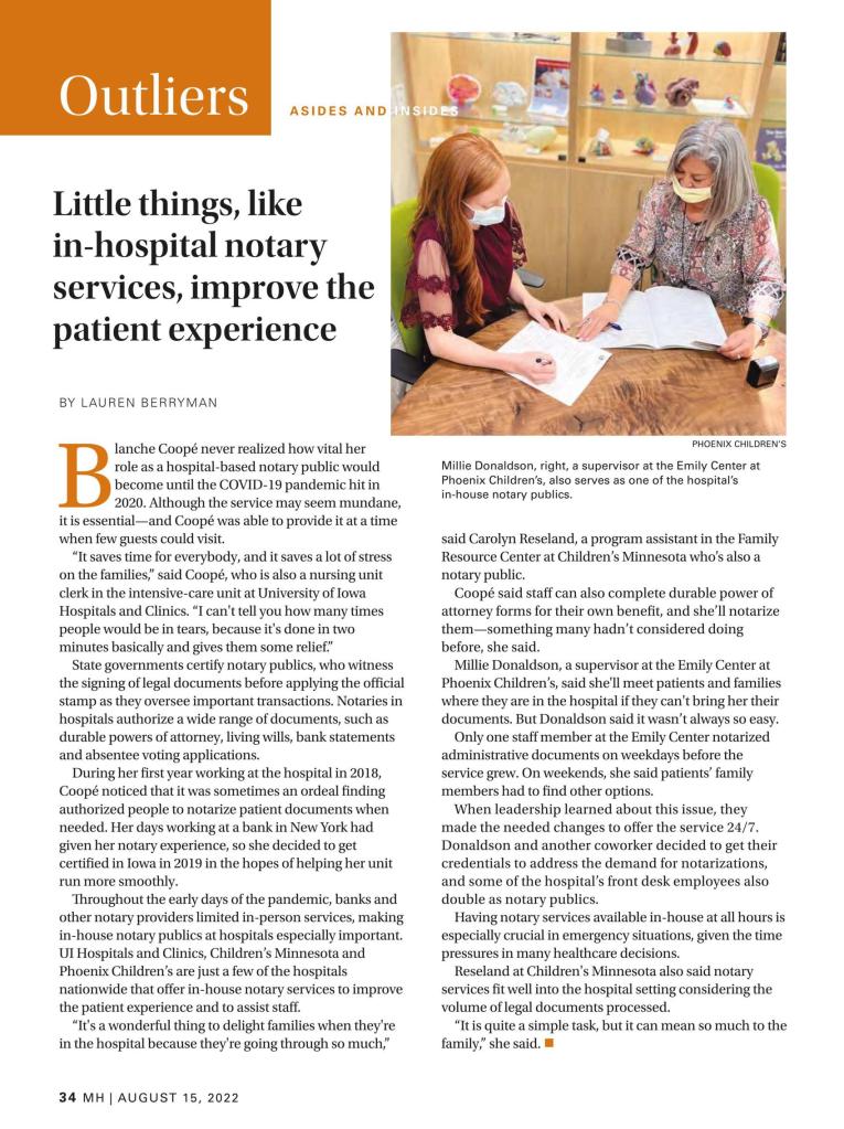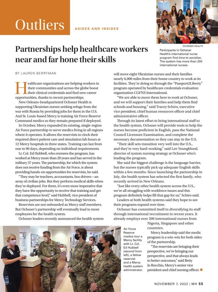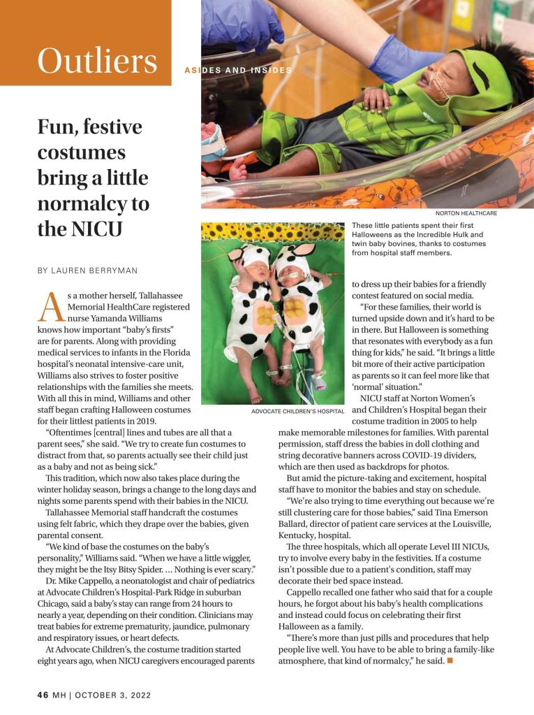 Tearsheets In “Outliers,” we feature something unique, innovative or fun happening in health care. Enjoy!